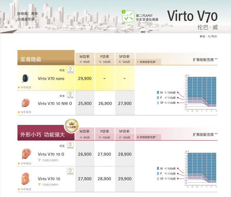 瑞士峰力Virto伦巴威 V70通道定制助听器 特价可咨询